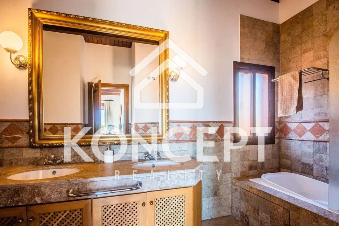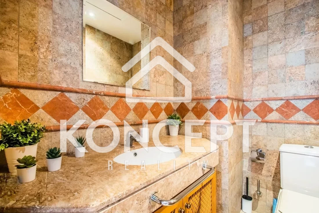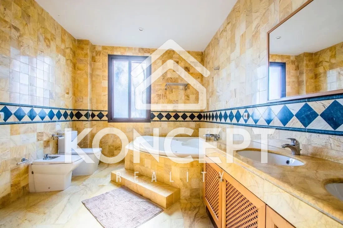 - 🪵 Povrchy: Krémový mramor na podlahách a v koupelnách dodává interiéru elegantní styl